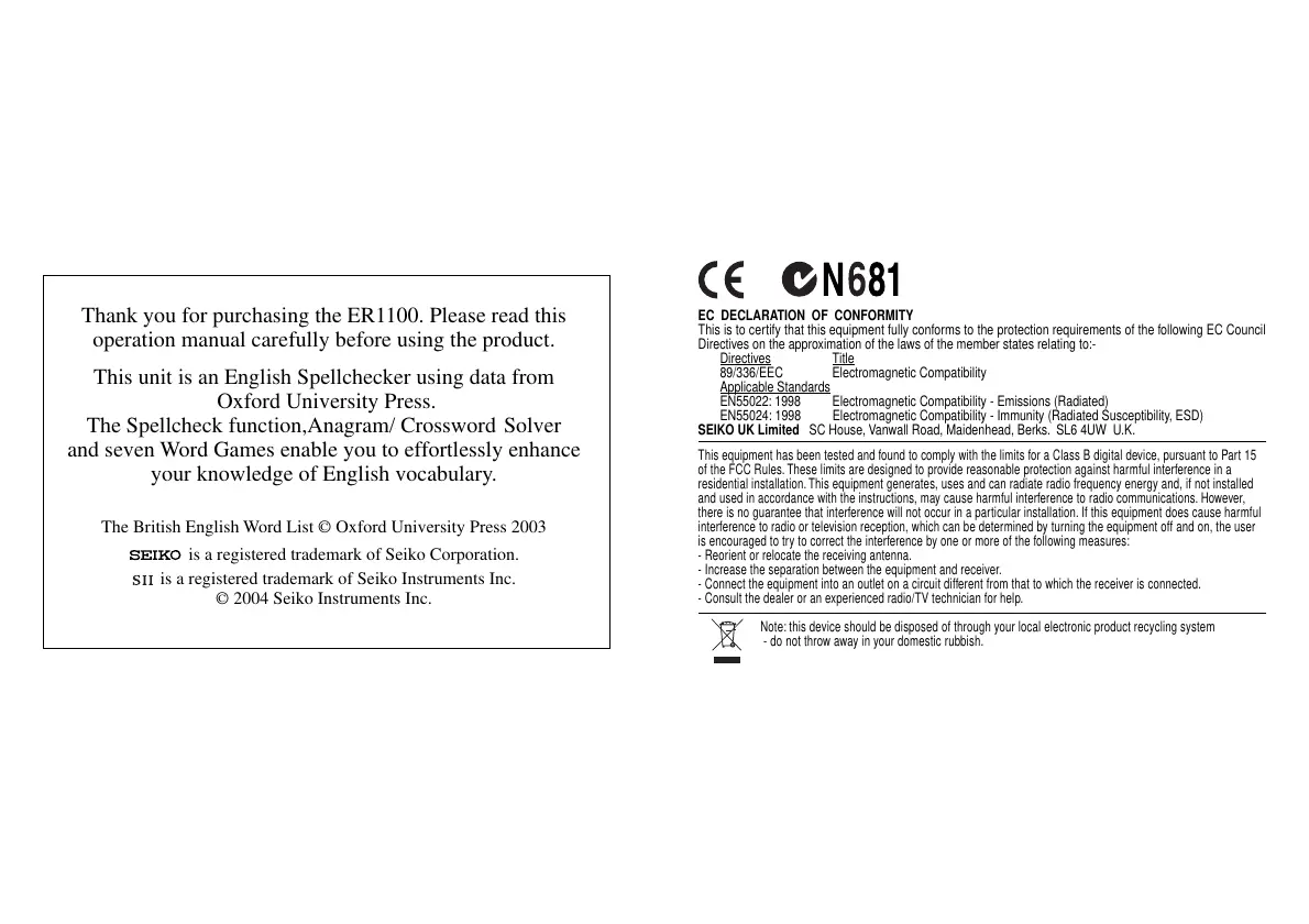Thank you for purchasing the ER1100. Please read this