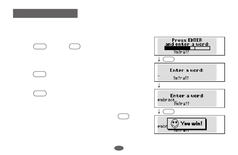The letters of a mystery word are displayed one at a time at regular intervals.
