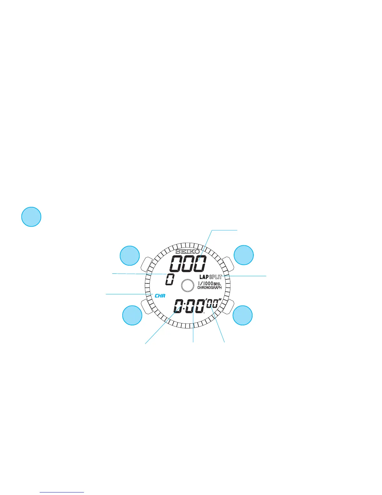 ● Stopwatch measures up to 23 hours, 59 minutes and 59.999 seconds in 1/1000-
