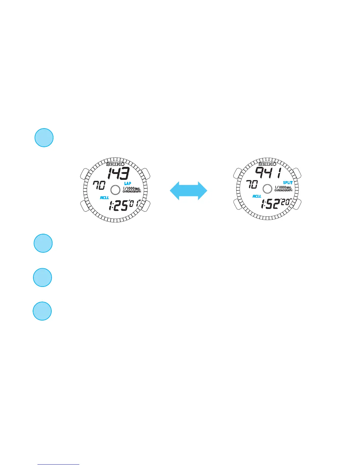 of Button B, the lap time and split time are displayed alternately.