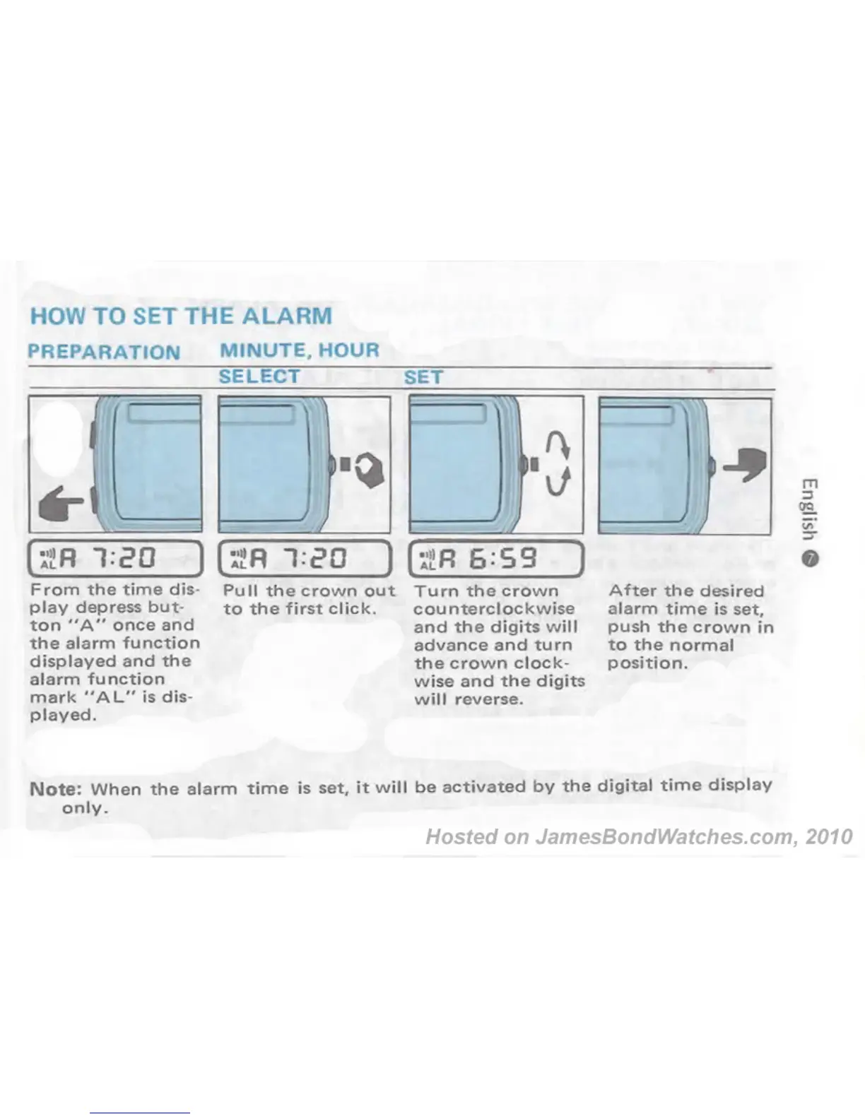 Seiko H357 - Setting the Digital Watch Alarm; Alarm Setting Preparation; Setting Alarm Time (Minute;Hour); Adjusting Alarm Digits