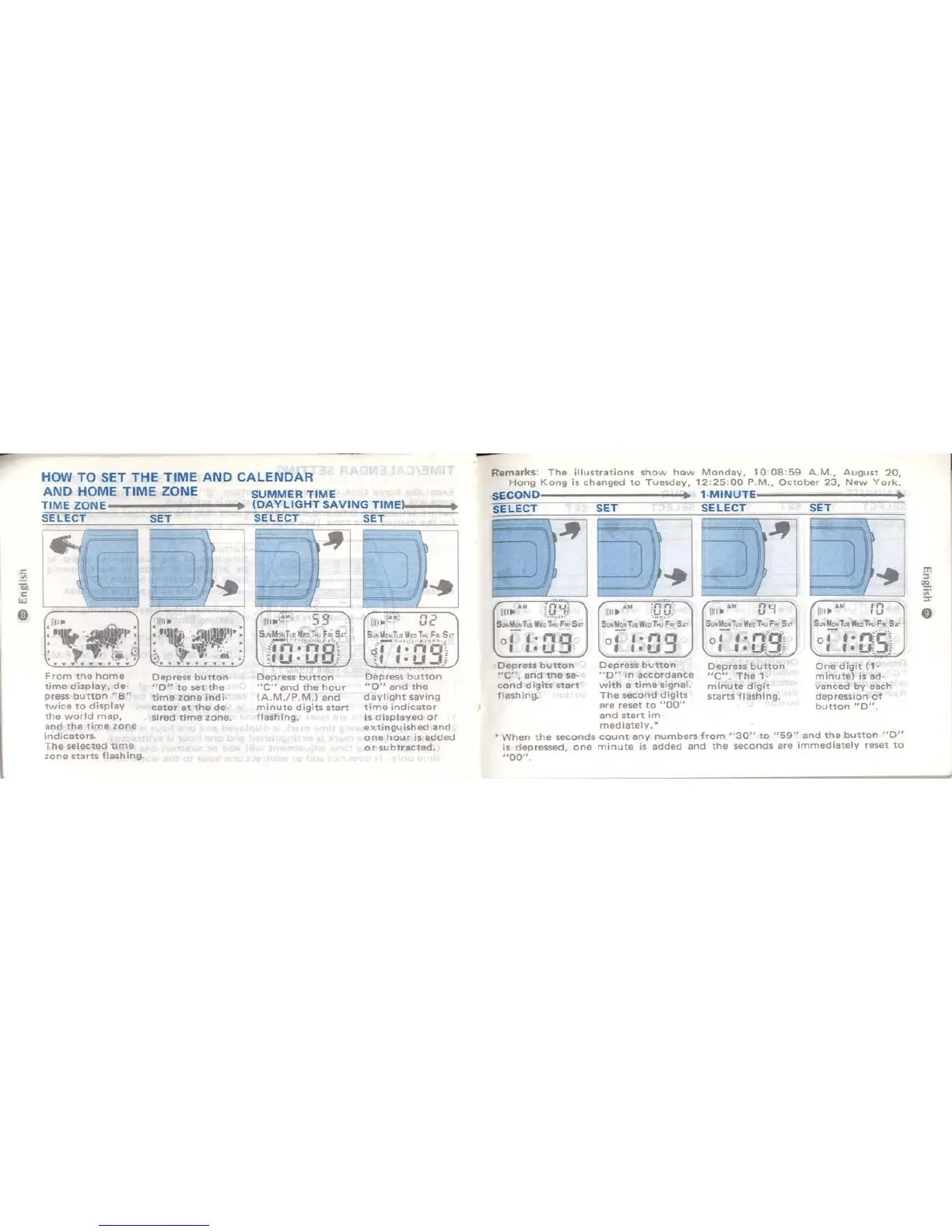 Seiko Quartz A239 - Detailed Time and Zone Setting; Setting Time Zone and Daylight Saving; Synchronizing Time Digits