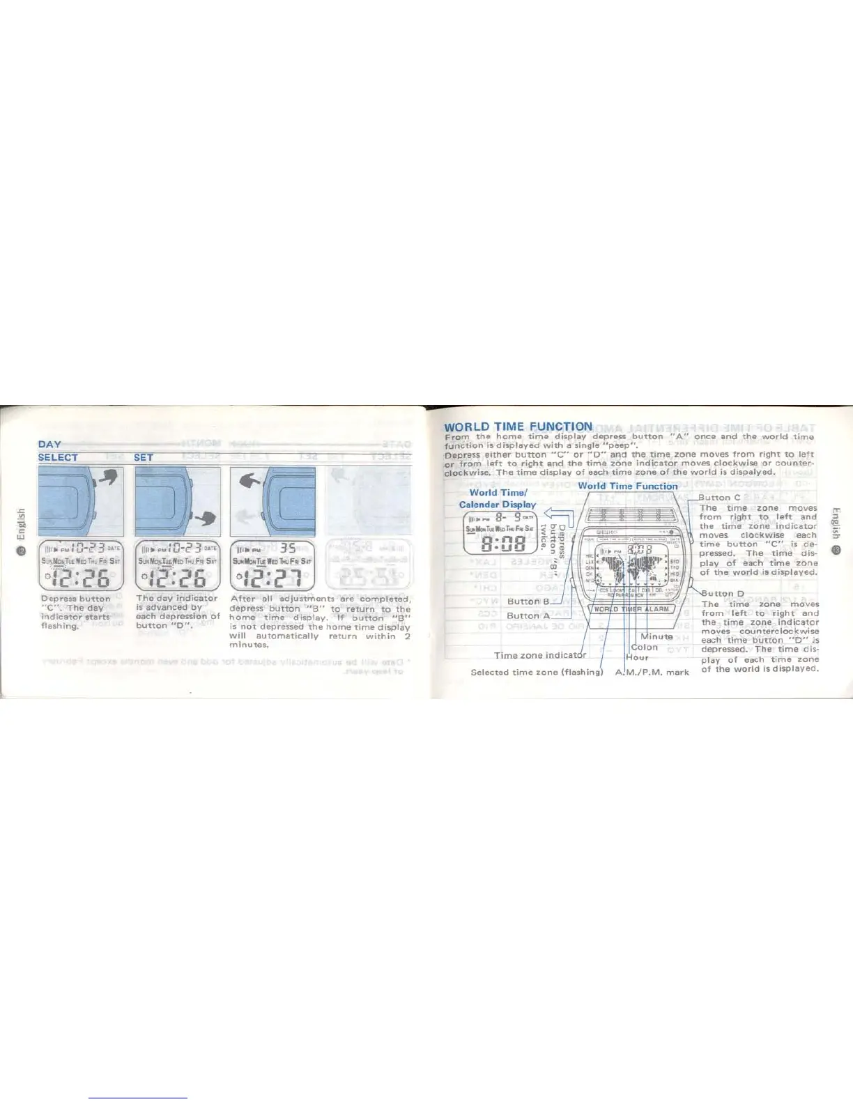 Seiko Quartz A239 - World Time Zone Management; Interchanging Time Zone Displays; Navigating Time Zones