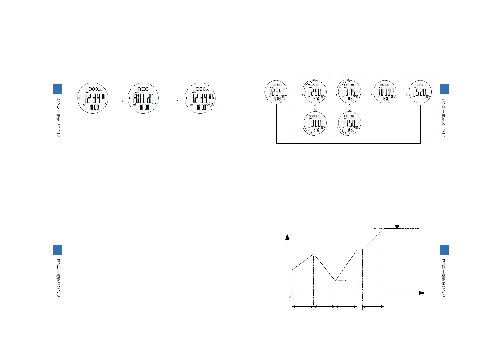 ・データ記録開始(REC ON)から現在までの、上り区間または下り区間の登高スピードの平