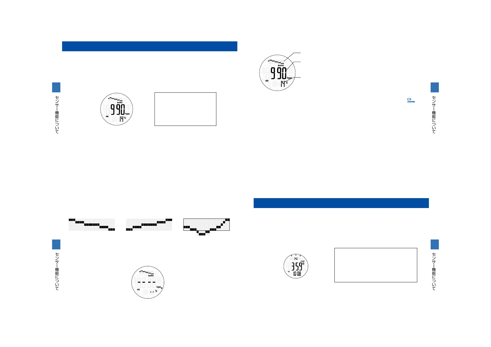 ※気圧はどのモードを表示していても計測を行いますが、充 電量が低下し、電池マークが(