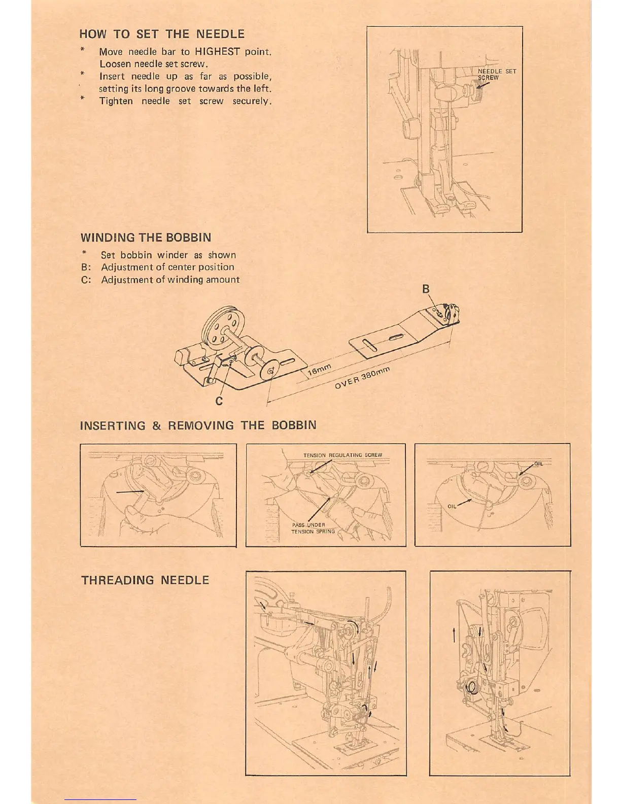 Seiko SLH-2B - Needle and Bobbin Procedures; How to Set the Needle; Winding the Bobbin; Inserting and Removing the Bobbin