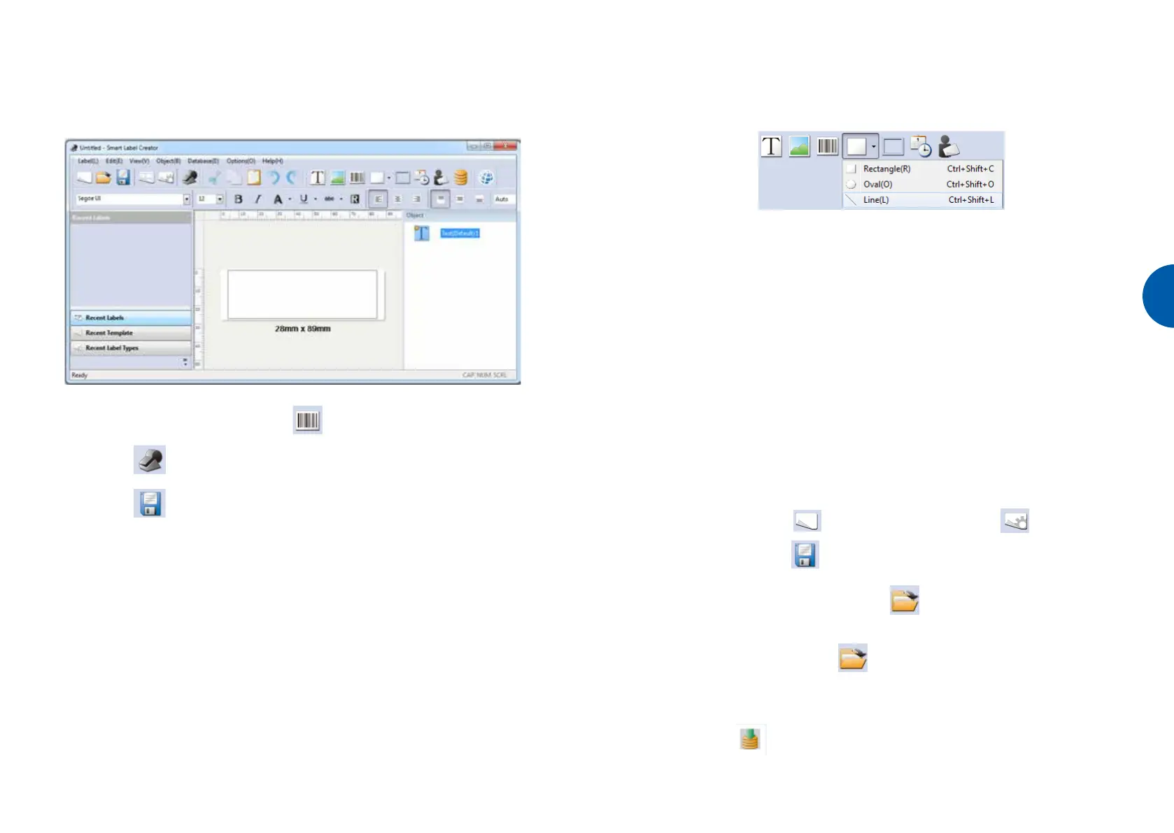 Los botones de objeto se utilizan para añadir diversos elementos a las etiquetas. Puede elegir entre