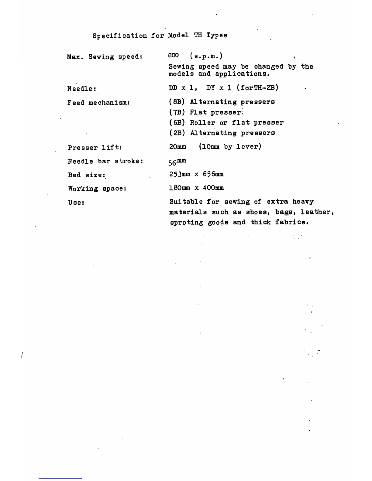 Seiko TH-2B - Machine Specifications