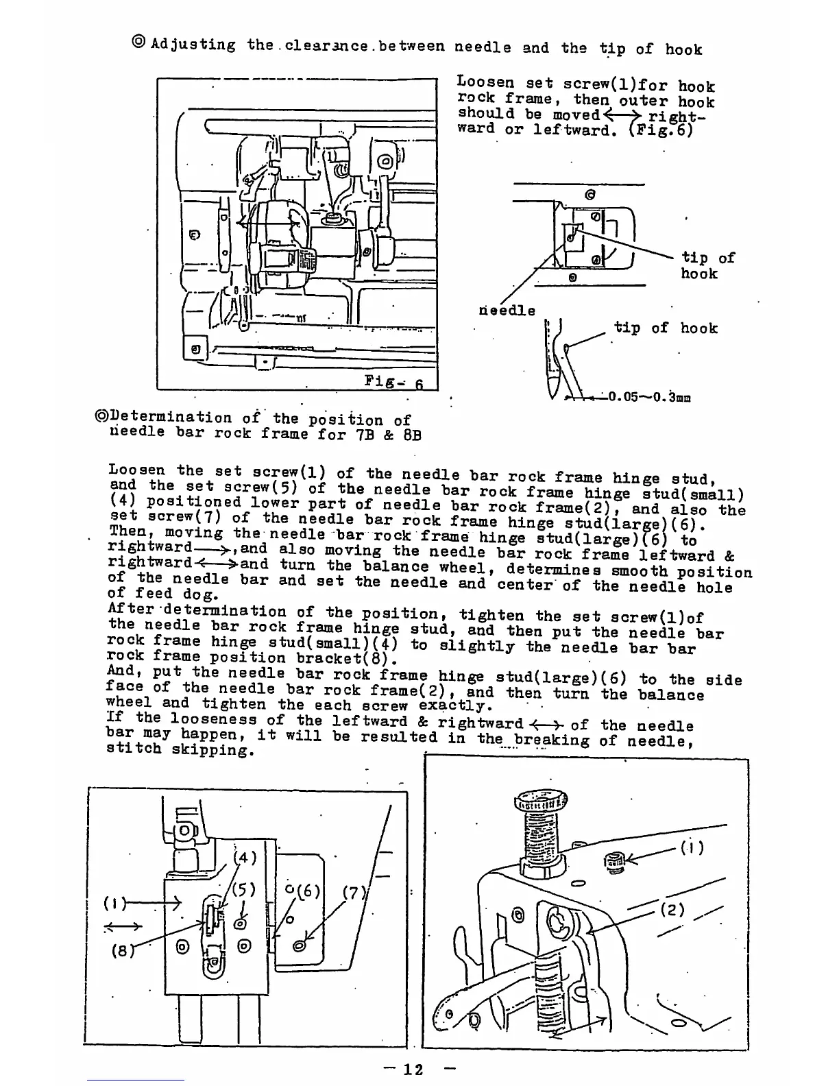 Seiko TH-8B - Adjusting the Clearance between Needle and the Tip; Hook; Rock Frame for 7 B & 8 B