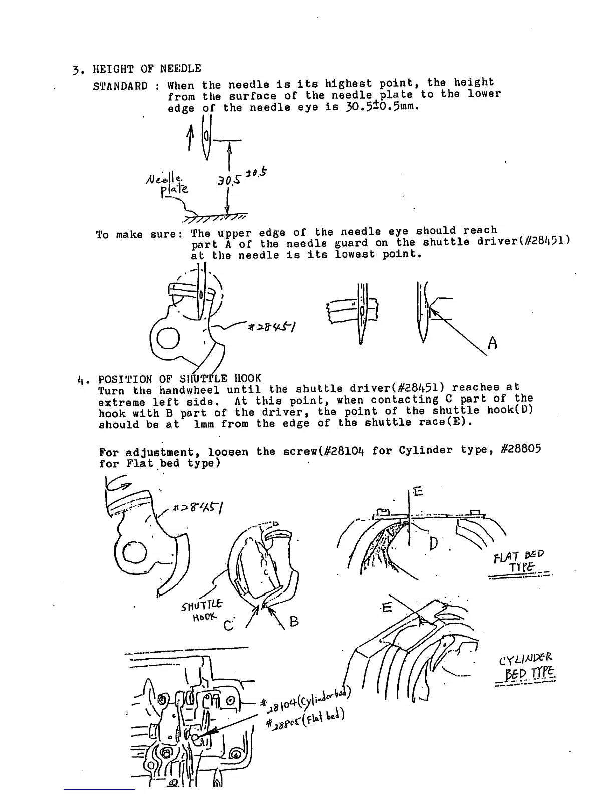 Seiko TH-8B - Height of Needle; Position of Shuttle Hook