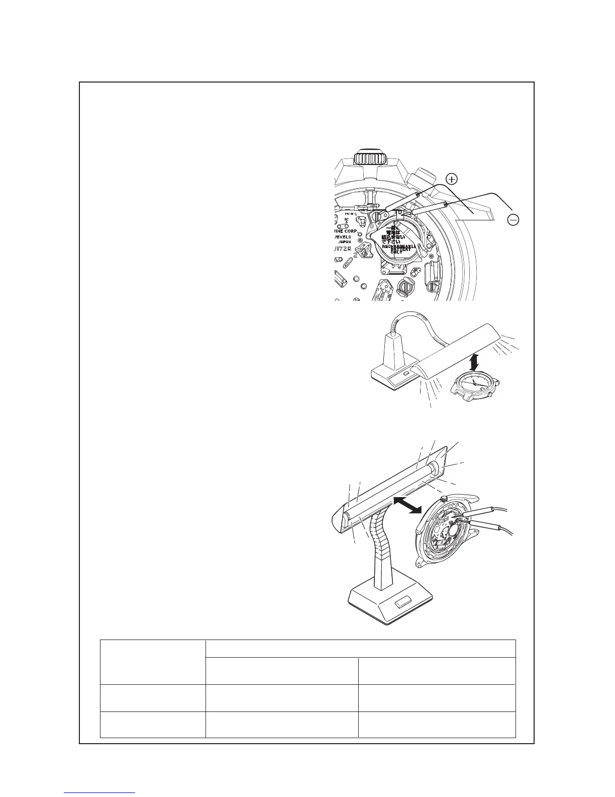 Table - criteria recharging function Cal. V172A/V174A