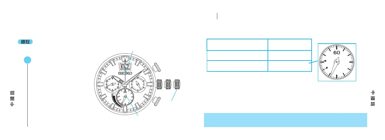 若在秒錶正在計時時拉出錶冠,則秒錶自動回位至