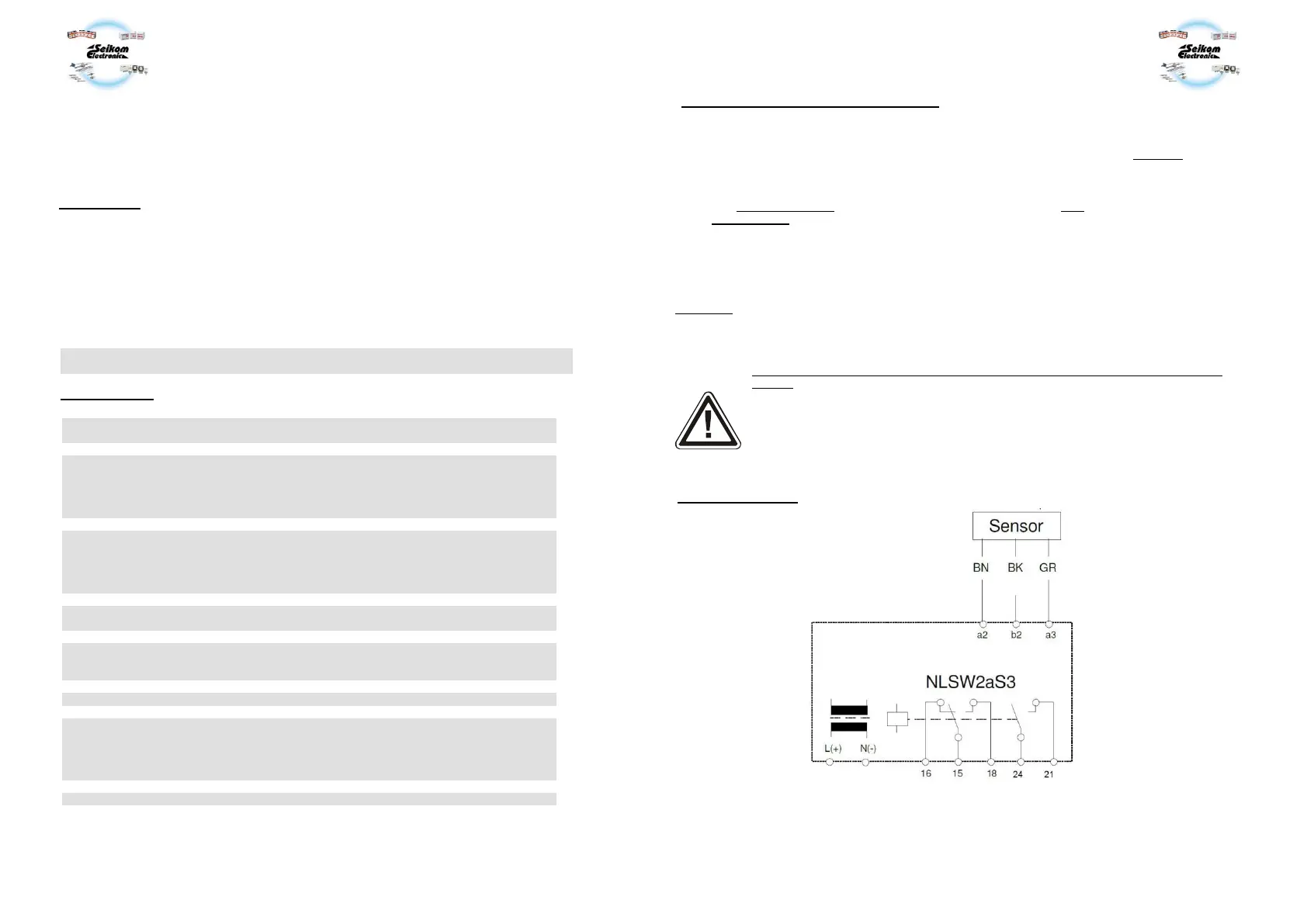 Das Gerät NLSW-2aS3 wird in Verbindung mit dem entsprechenden Fühlern zur Überwachung von