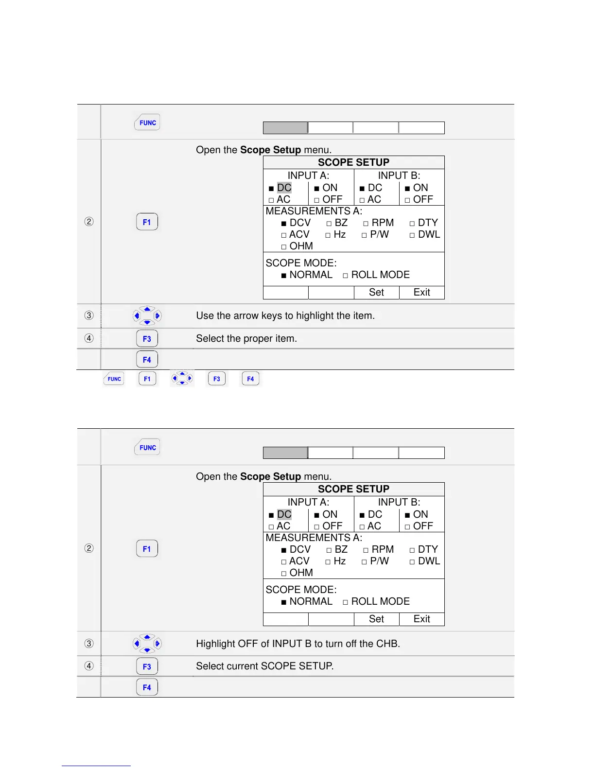 Highlight OFF of INPUT B to turn off the CHB.