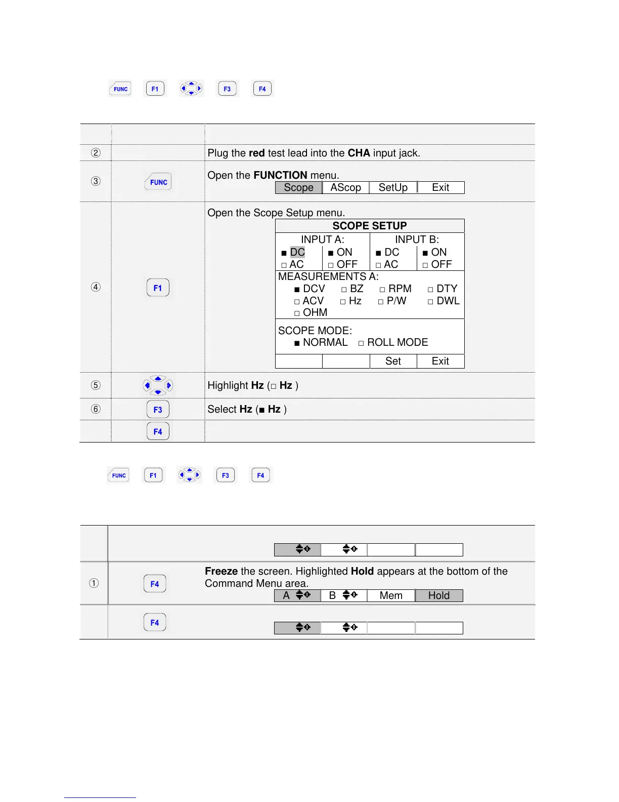 Freeze the screen. Highlighted Hold appears at the bottom of the