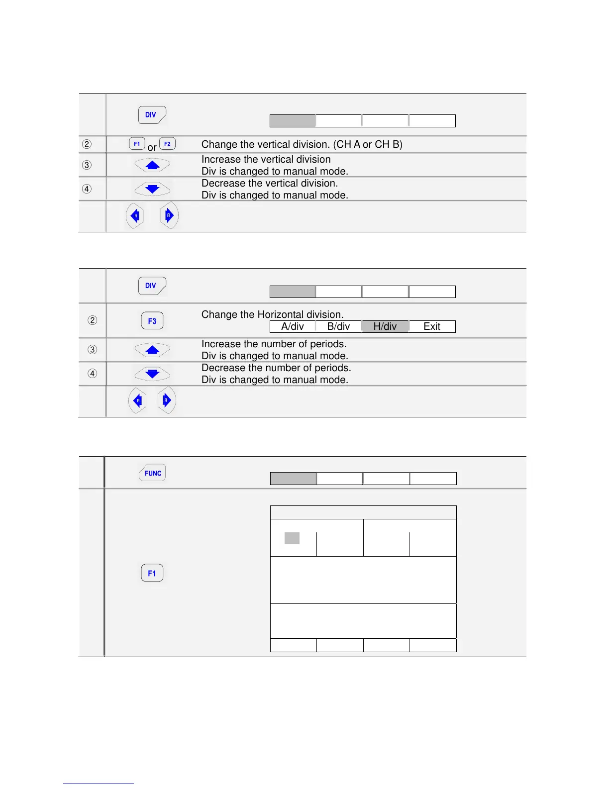 Change the vertical division. (CH A or CH B)