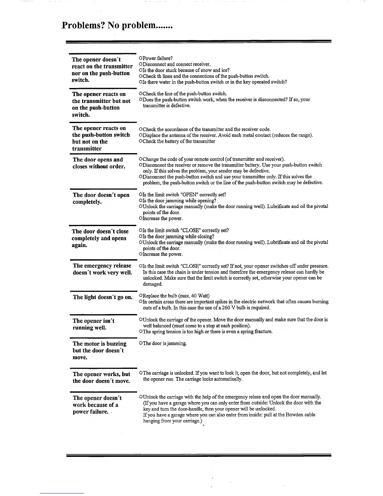 Seip ST 77 - Troubleshooting Common Issues; Opener Unresponsive; Door Movement Problems; Motor and Light Malfunctions