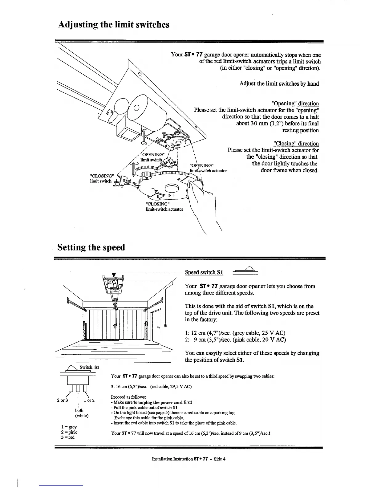 Seip ST 77 - Adjustments and Speed Settings; Setting Limit Switches; Configuring Operating Speed