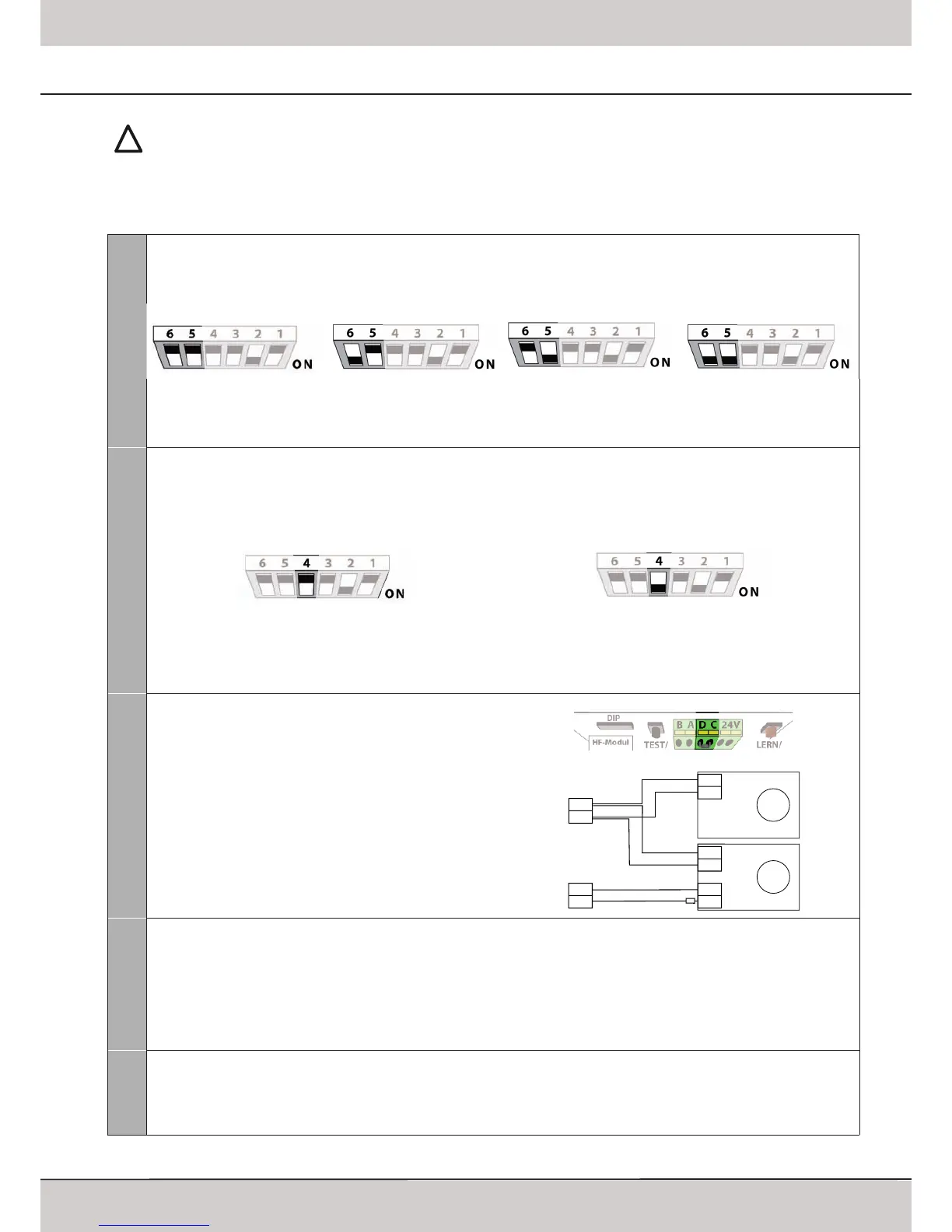 After changing the DIP-switch settings the red LED will start blinking in intervalls� Shortly press the red LEARN-button to