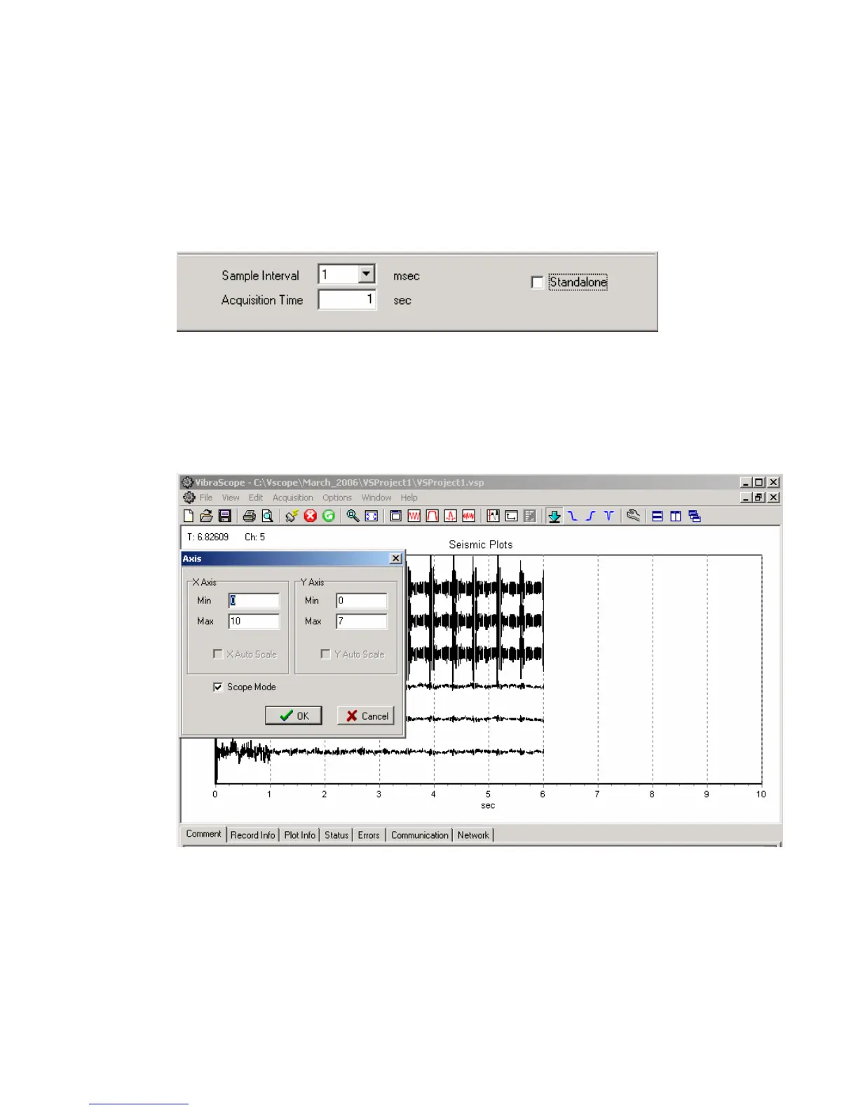 Select Scope Mode, and set x –axis to larger than acquisition time.