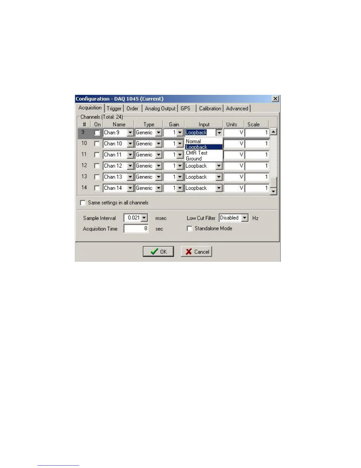by selecting “Loopback” in the DAQlink configuration - Input selection. When “Loopback” is