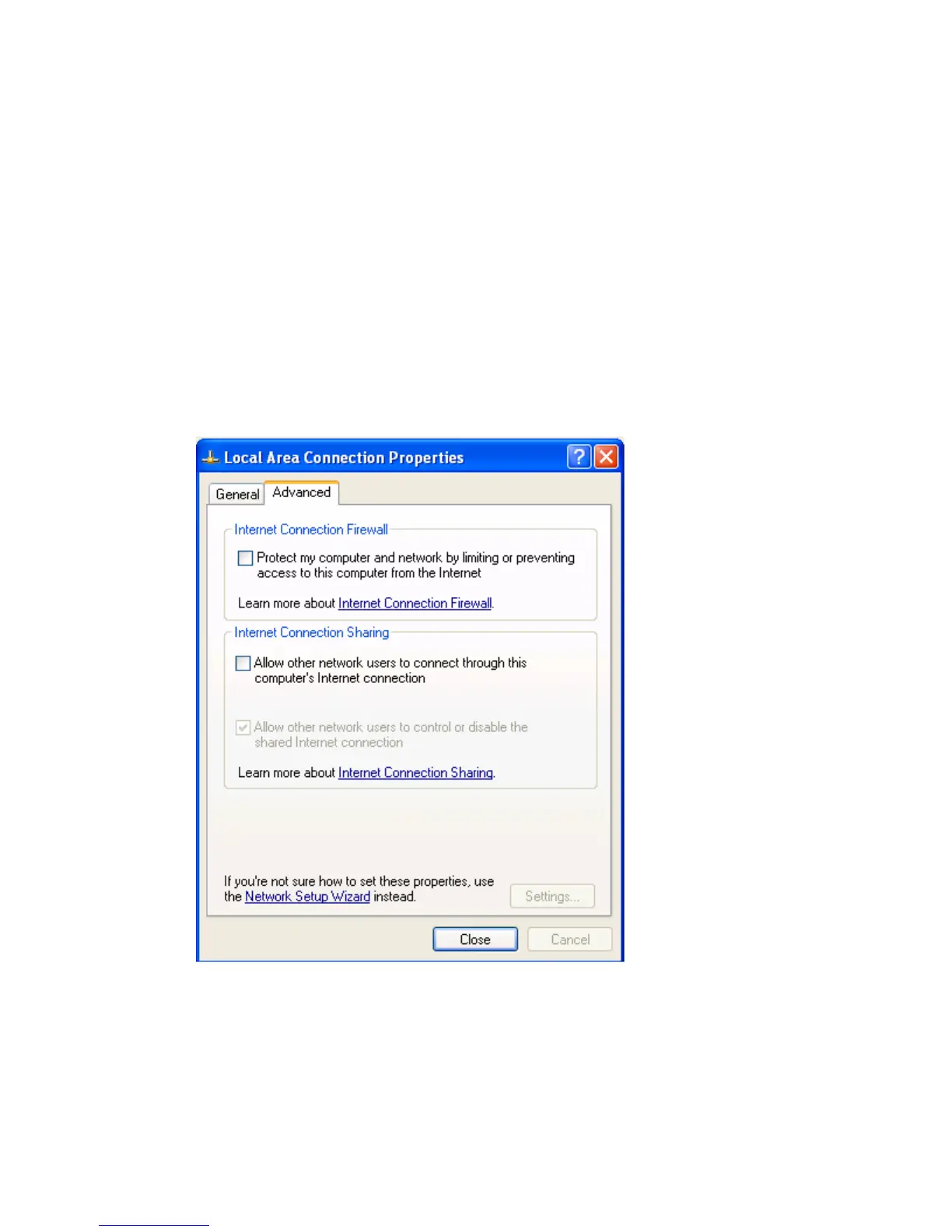 Advanced Menu of the Local Area Properties and disable the Firewall.