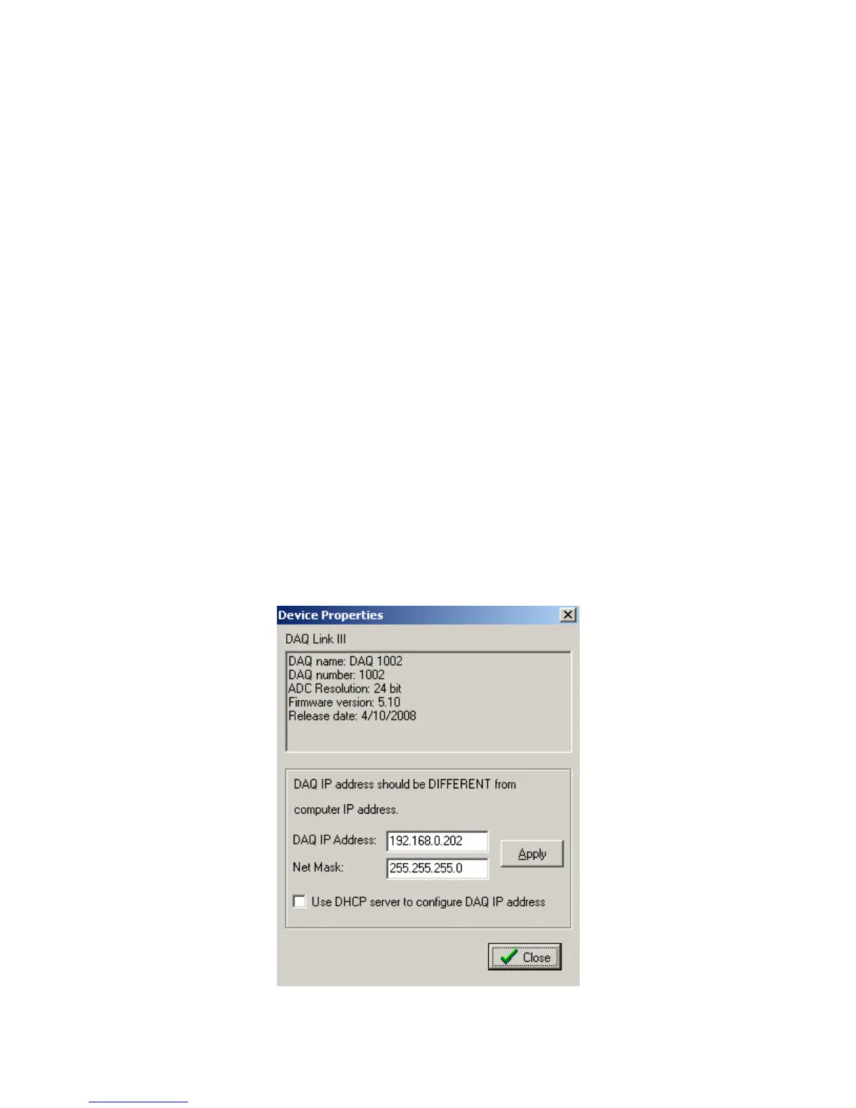 Each DAQlink III unit should have a unique IP address. The IP settings selection allows