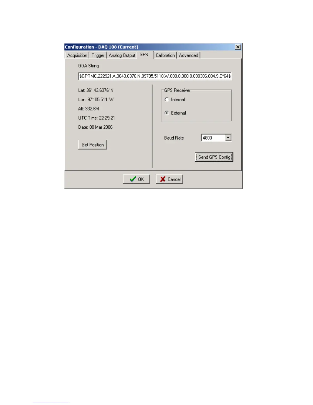 Press the “Get Position” button to verify that the GPS unit has a valid position and the
