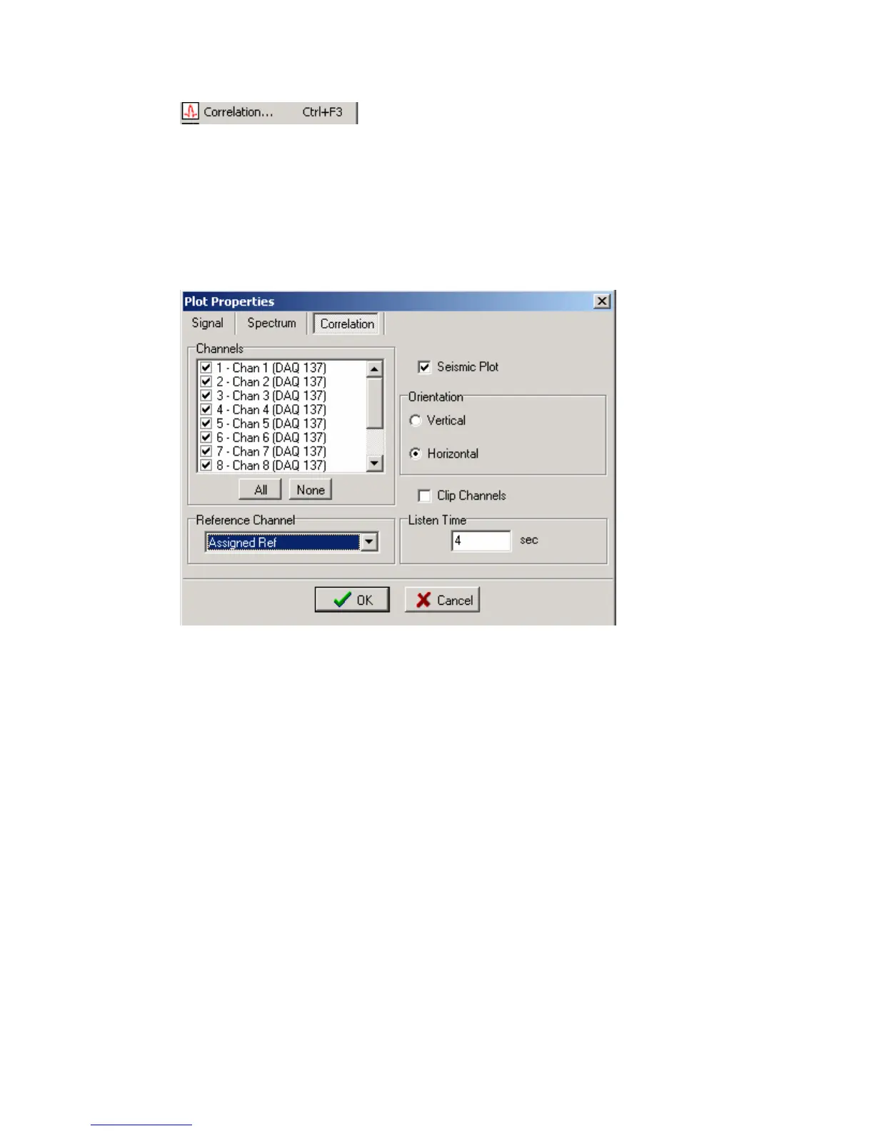 = Reference. Other channels can be selected with the assigned reference pull down menu.