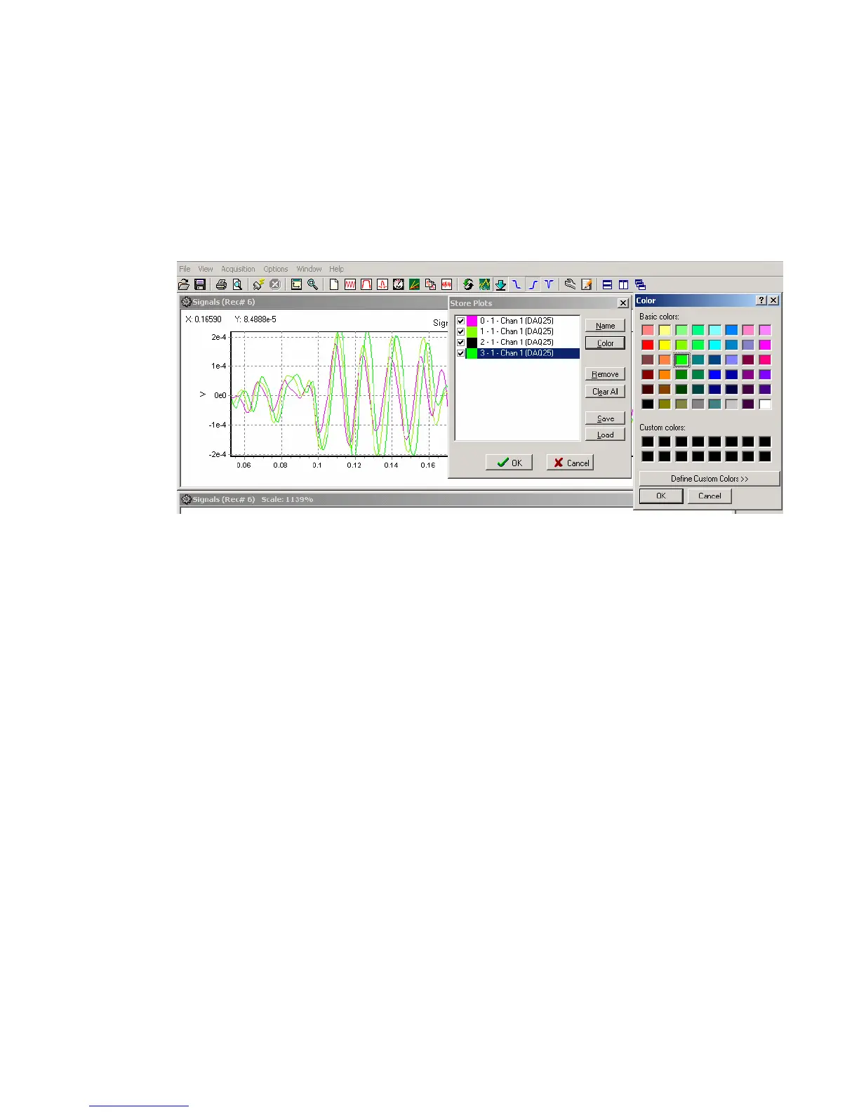 to another signal. The first trace in a plot will be stored. The color and name of each stored plot