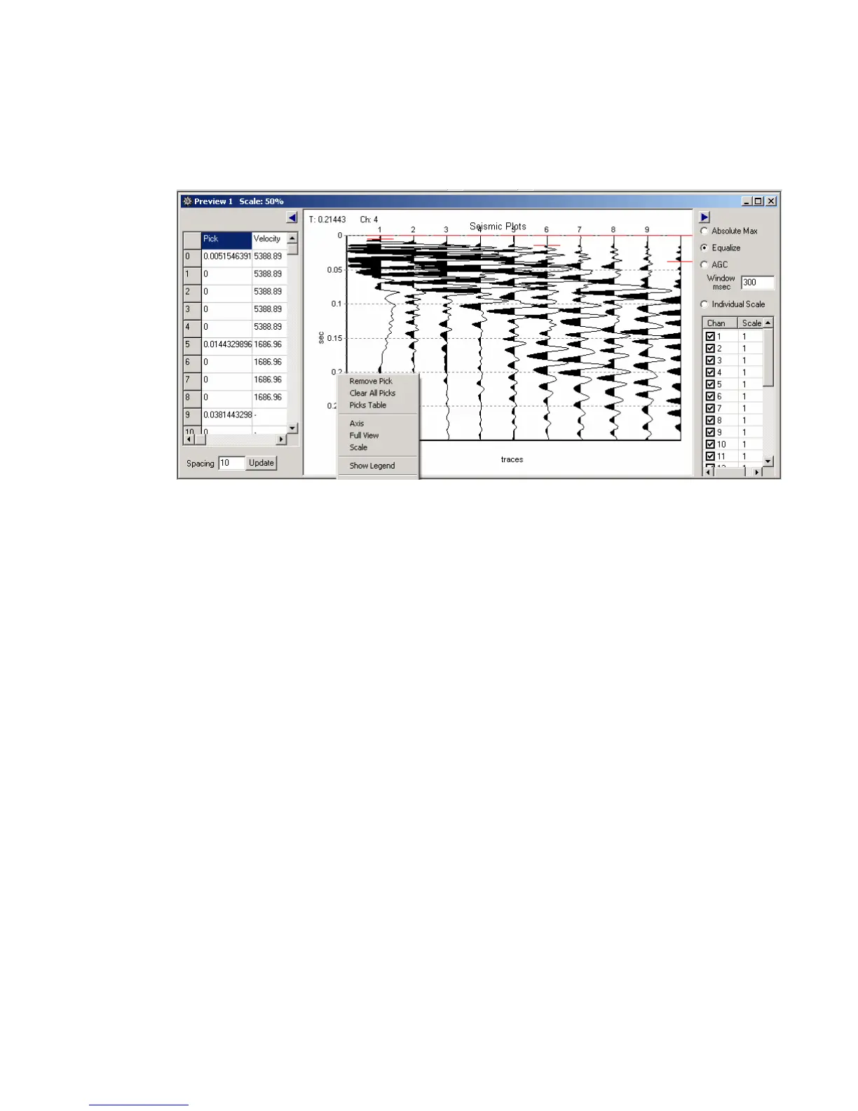 The geophone spacing is entered at the bottom of the screen. The velocity will be