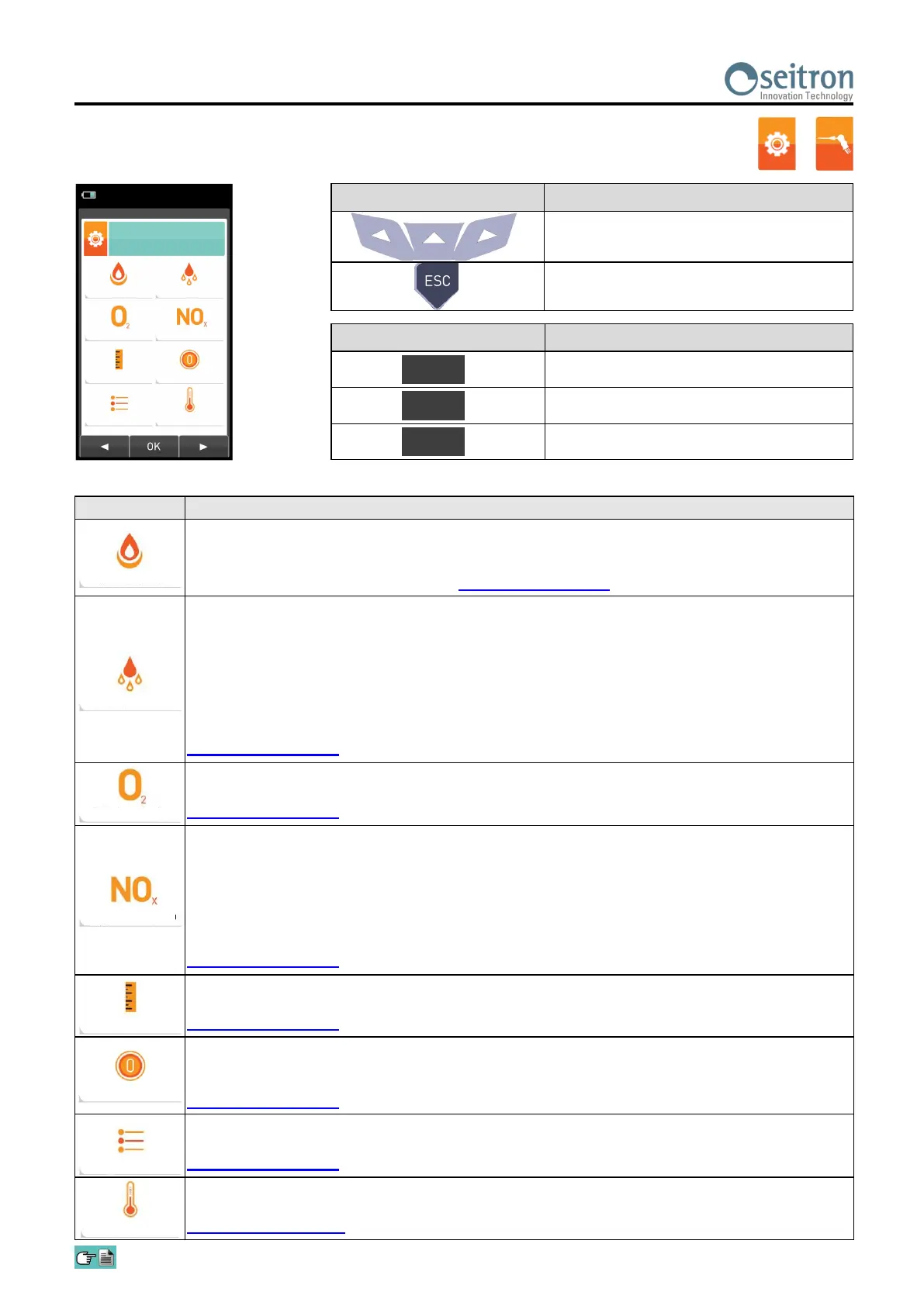 In this sub menu the user can see the list of measurements that the device can perform. With