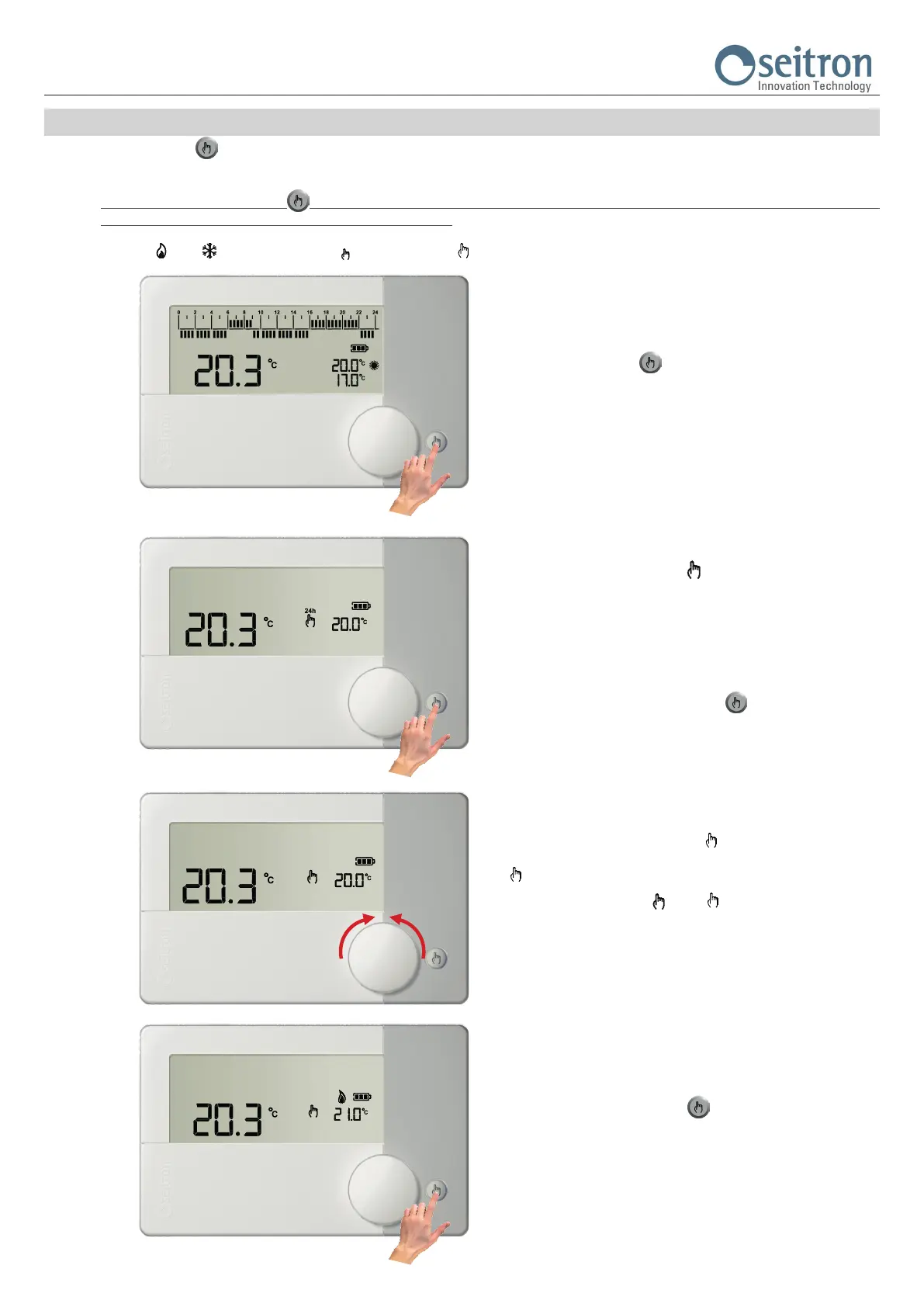 On manual operation mode the temperature regulation (Set-Point) can be modied at any time by turning the knob and it is independent from the Comfort
