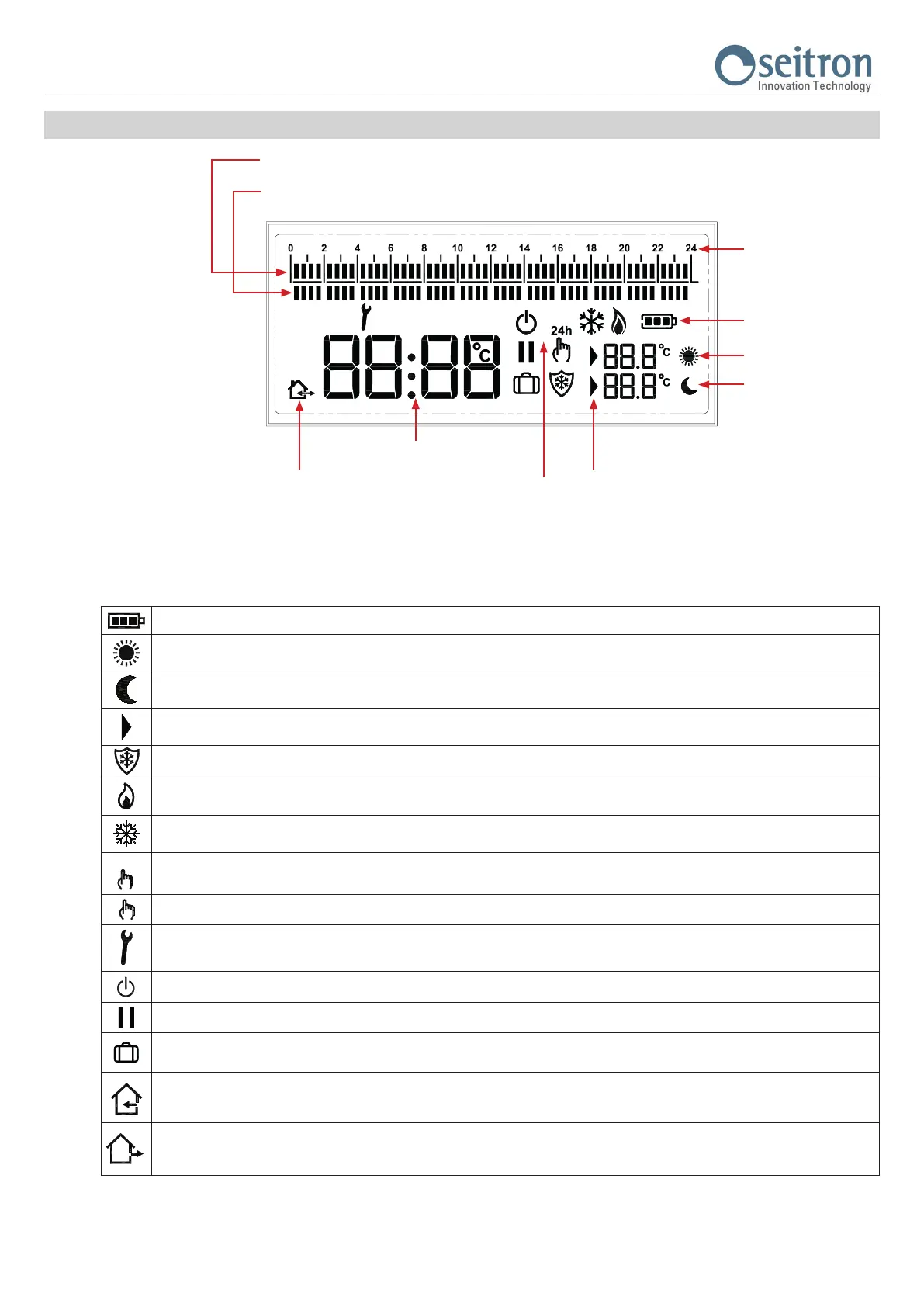 On the table below, are shown the symbols which can appear on the display and their meaning: