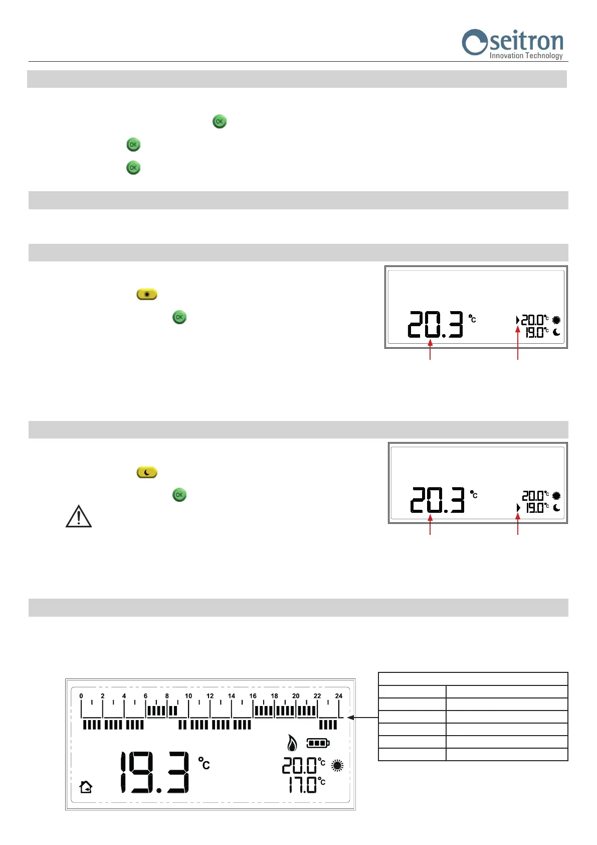 The upper segments strip shows the temperature regulation on Comfort mode, while the lower one shows the temperature regulation on Economy.