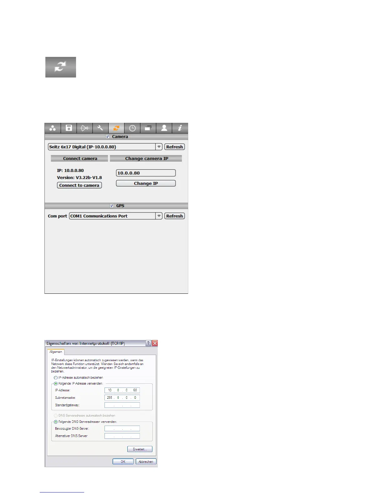 the IP of the camera (digital scan back) and that both are located in the same subnet: