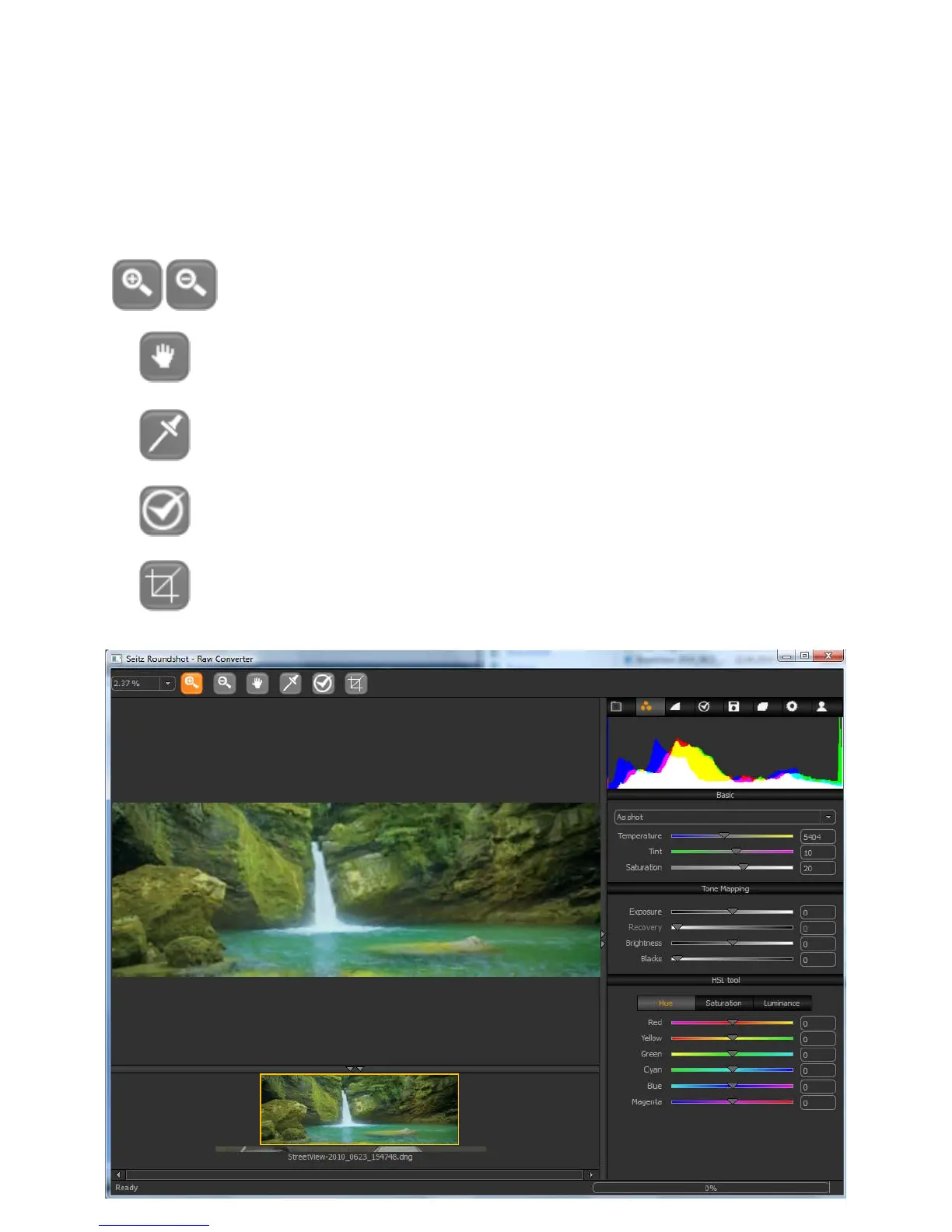 Using the “Tool bar” it is possible to navigate in the image and to apply some basic
