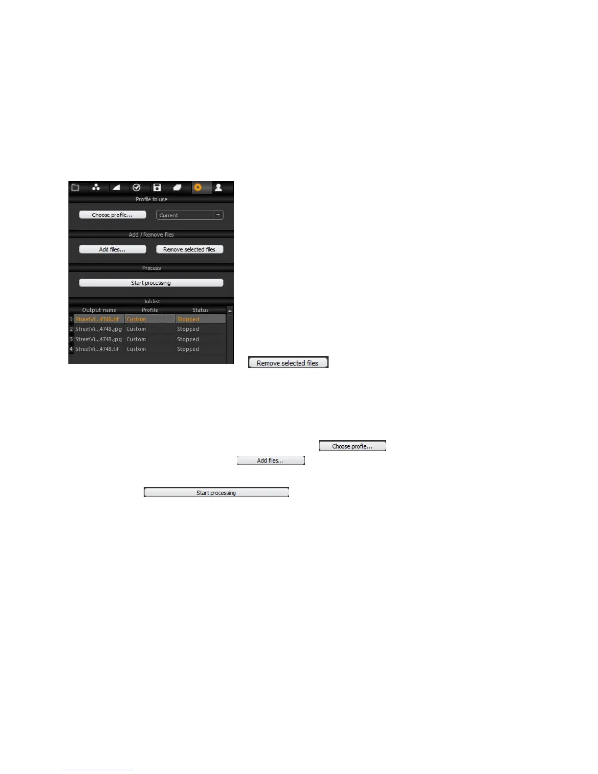 Add files: if some profiles are already saved, it is possible to apply them on images