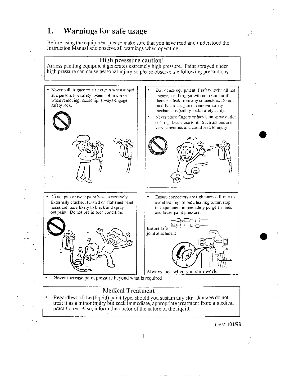 • Never pull trigger on airless gun when aimed " Do not use equipment if safety lock will not