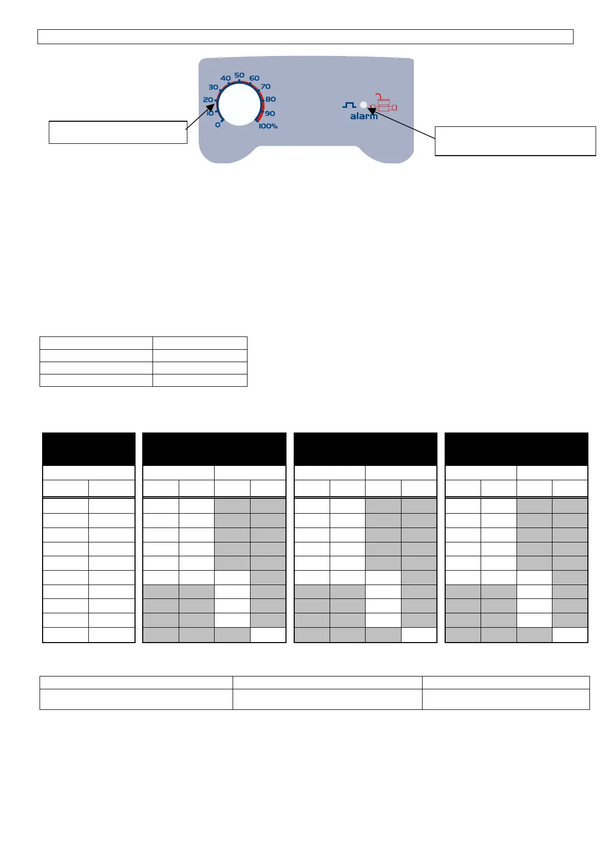 Pompa dört harici darbeden sonra (darbeli sayaç) ve potansiyometre %100’e ayarlı iken bir vuruş yapar.