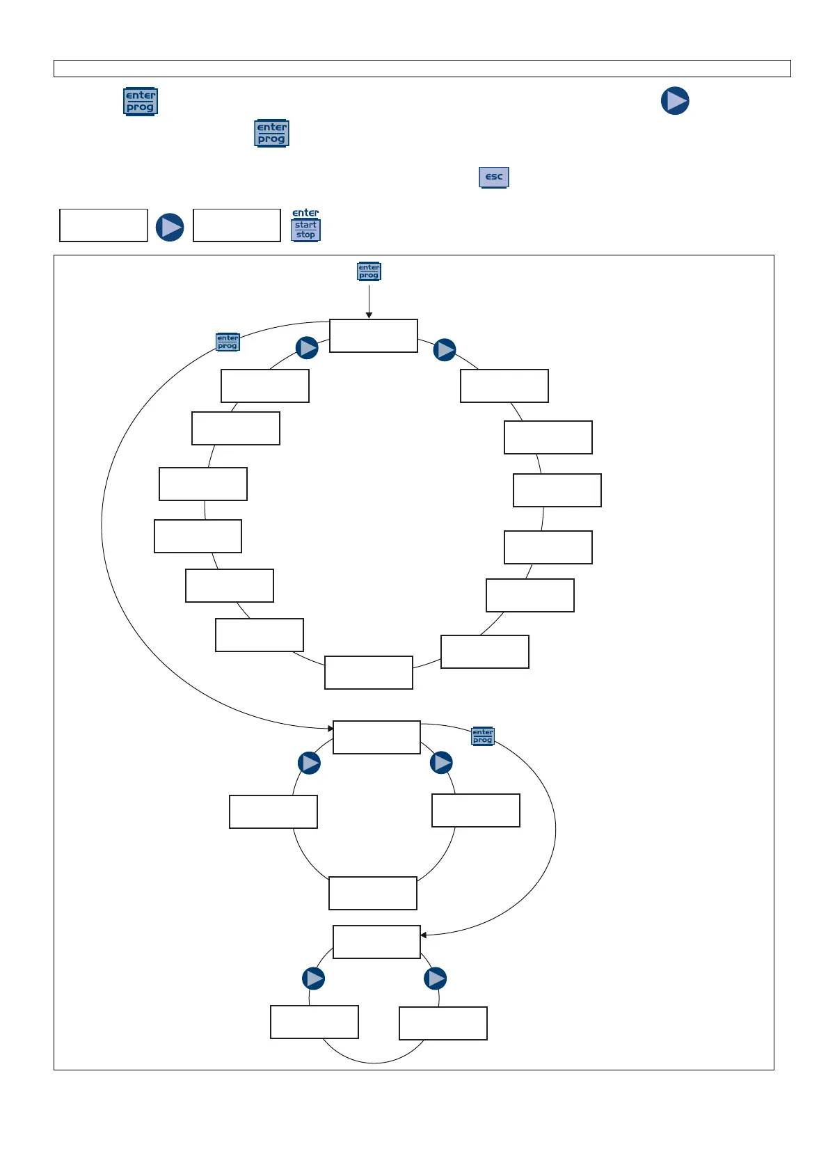 Press the keys for more than three seconds to access the programming mode. Press the key to scroll