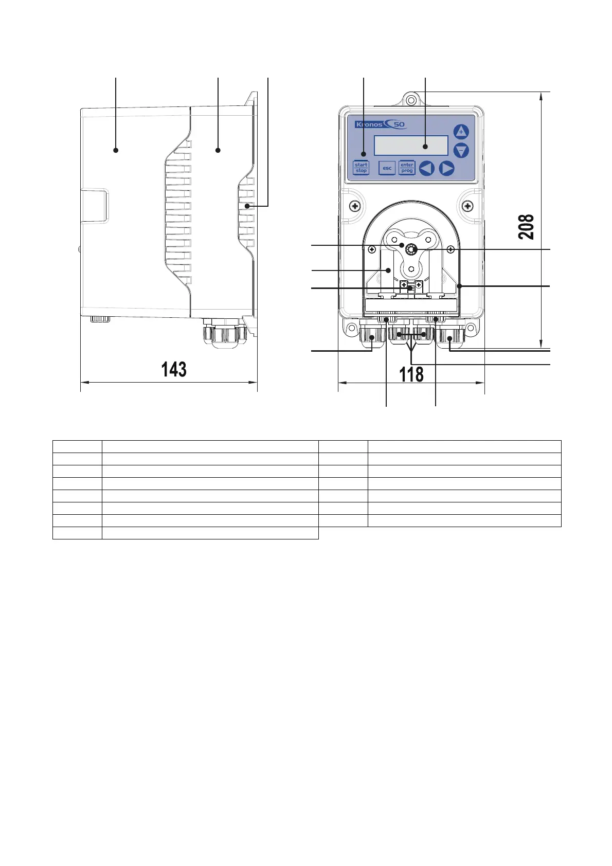 • Extremo líquido (rotor, rodillos y manguera bomba)