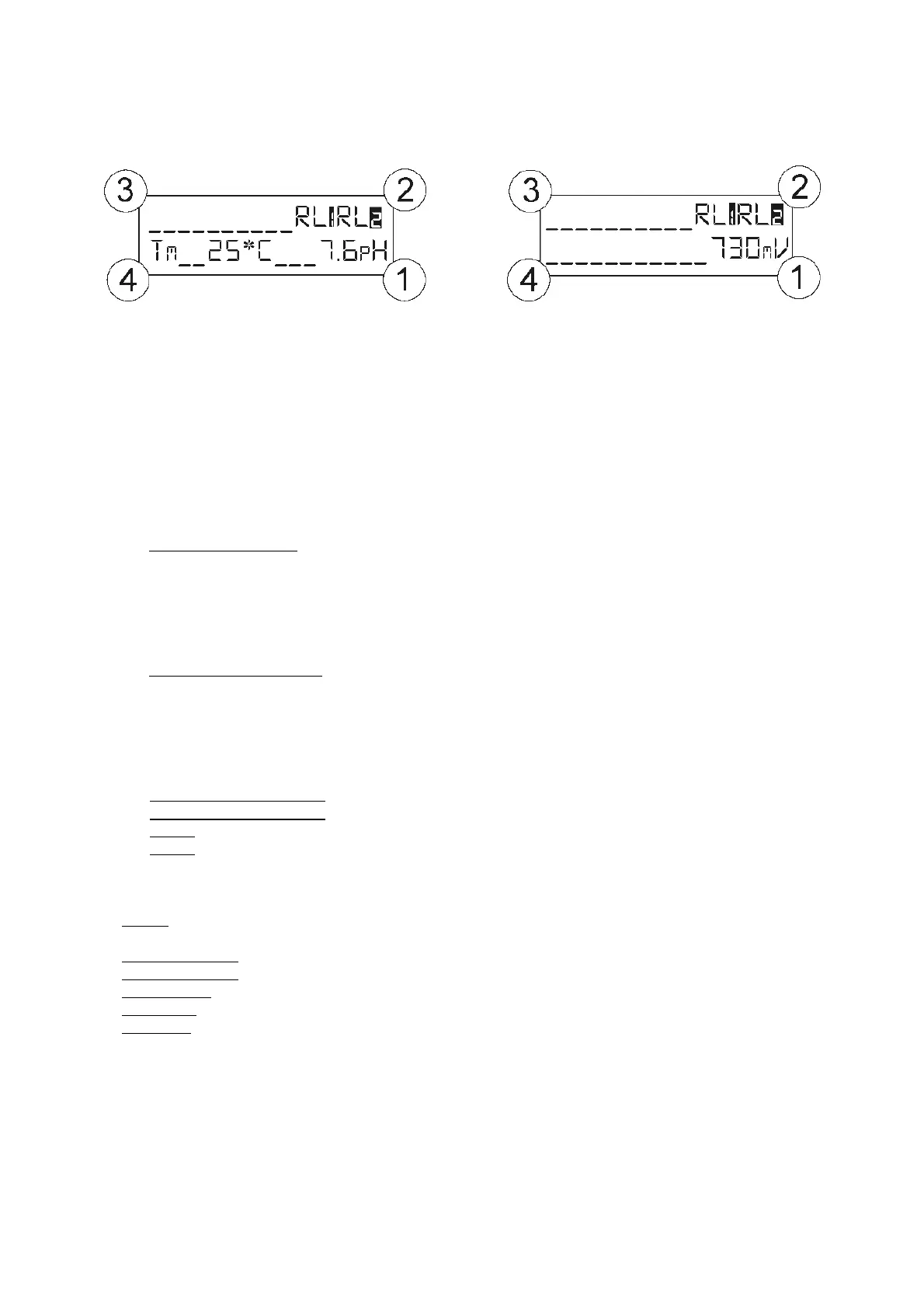 = Visualización temperatura manual o automática para la medida del pH; en la versión Redox área vacía