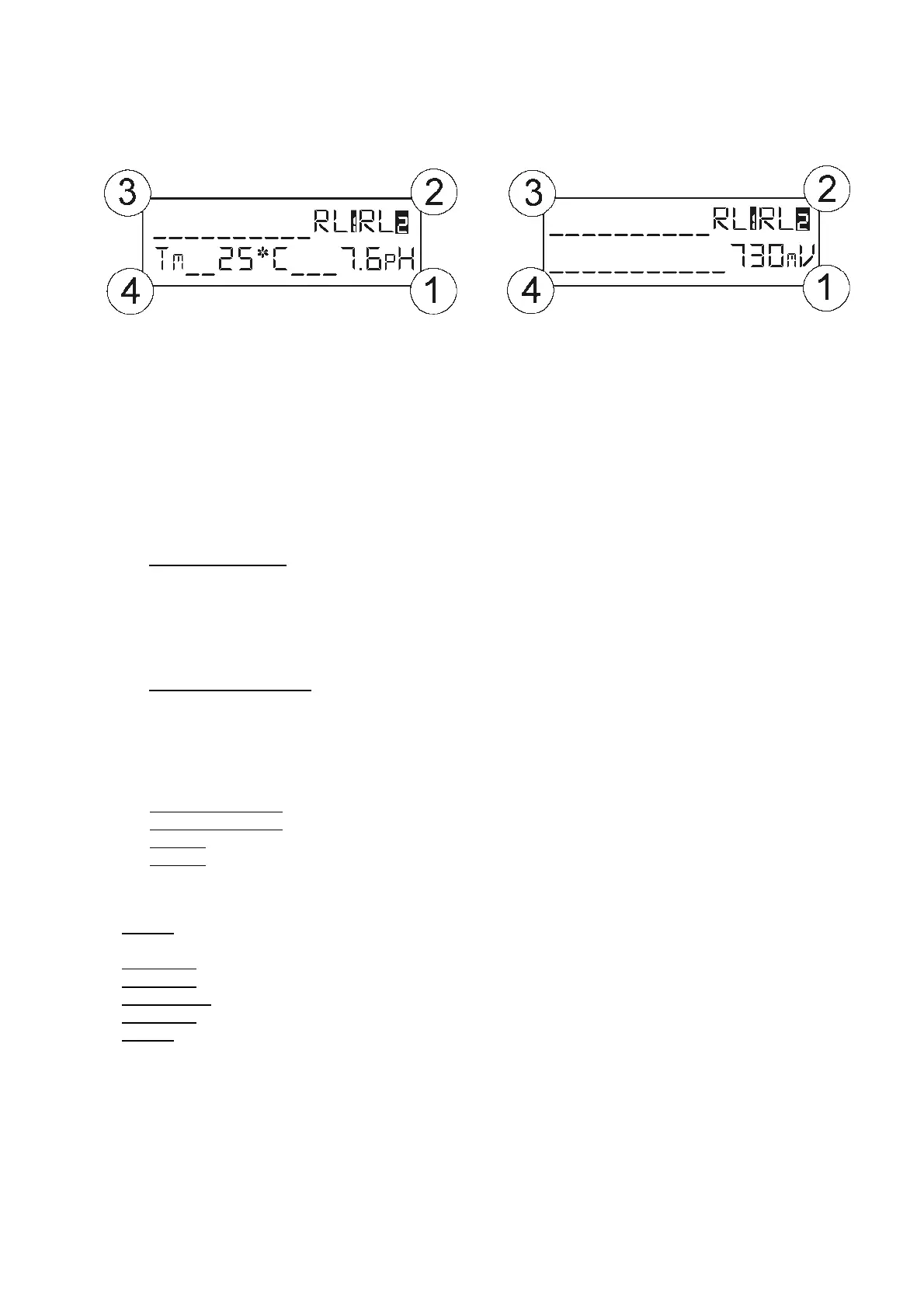 = Affichage température manuelle ou automatique pour la mesure pH ; sur la version Redox zone vide