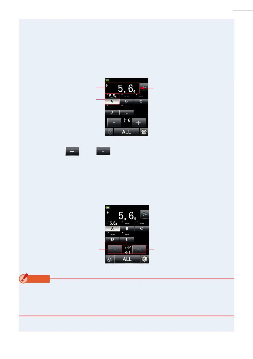 The ash of the selected Group will re, and the measured value (F-stop) will be