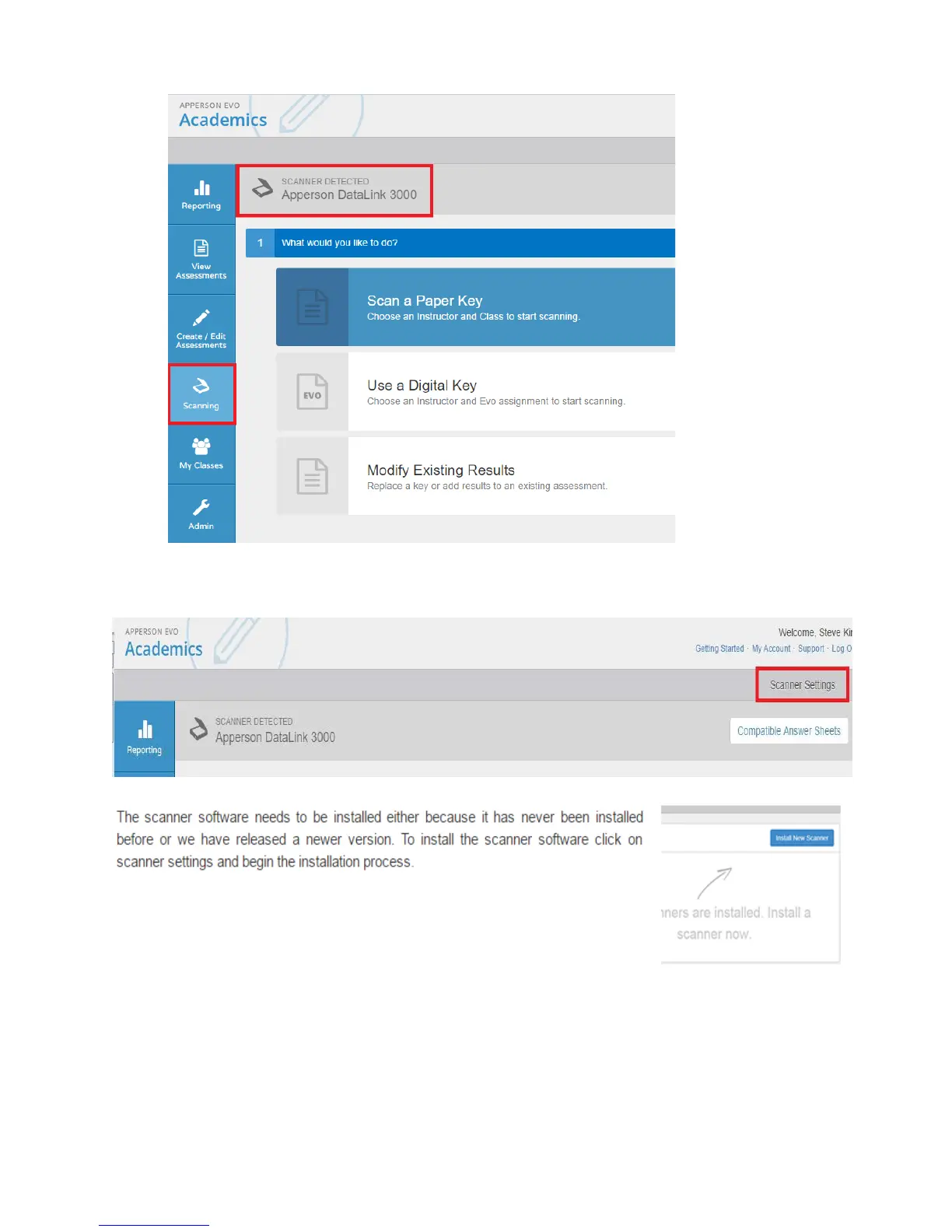 6. Once detected, it should list the type of scanner.