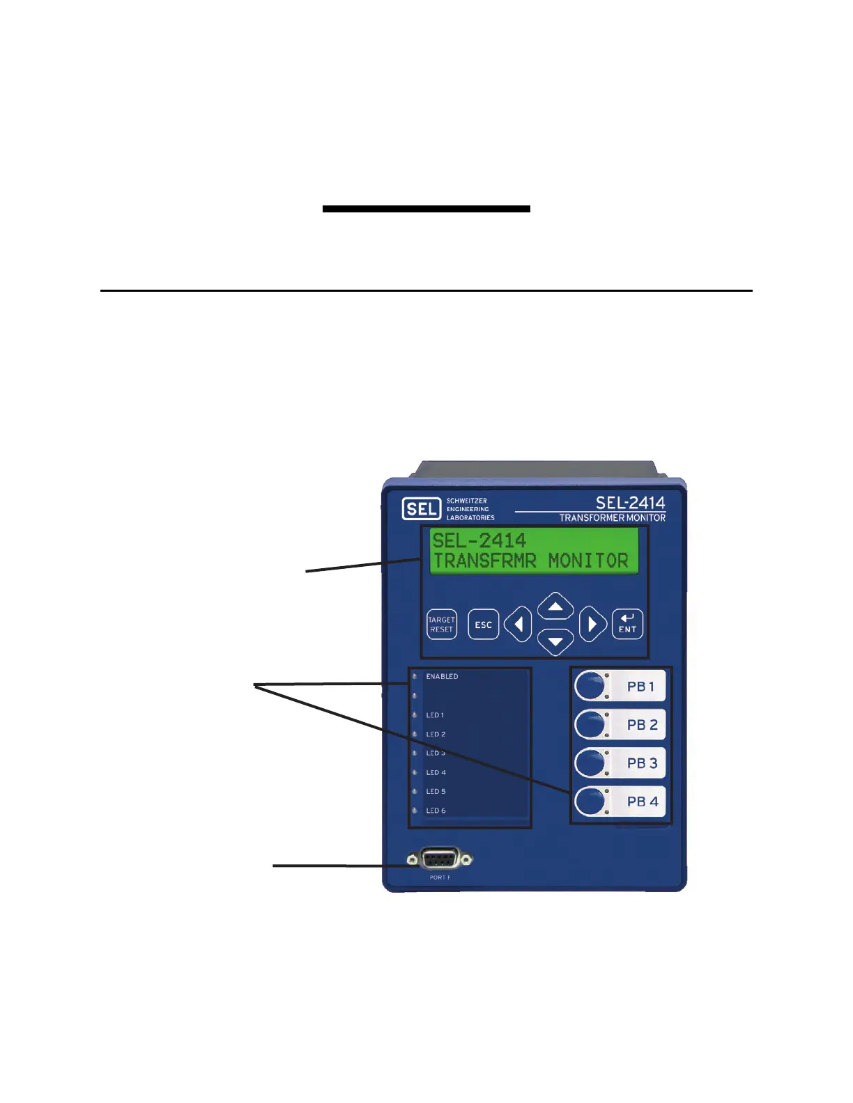 The SEL-2414 Transformer Monitor front panel makes data collection and con-