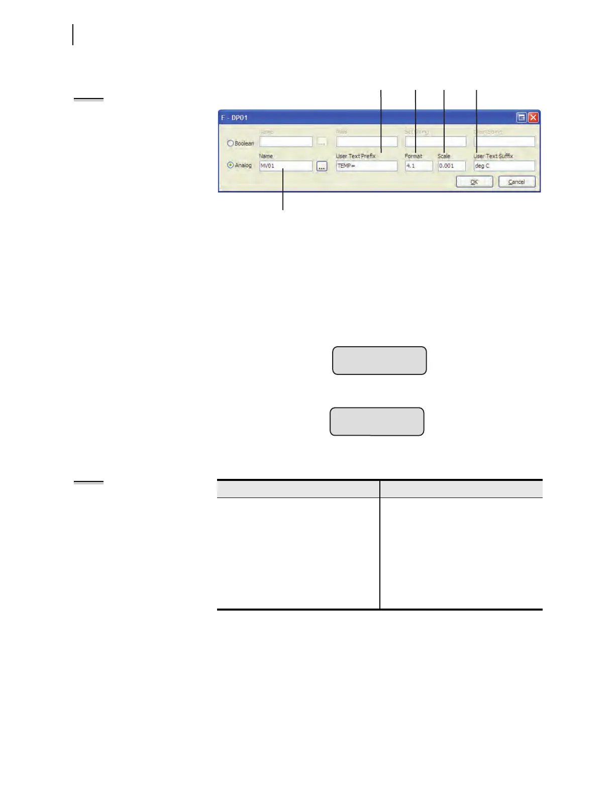 Figure 8.8 Analog Name and User Text and Formatting Strings