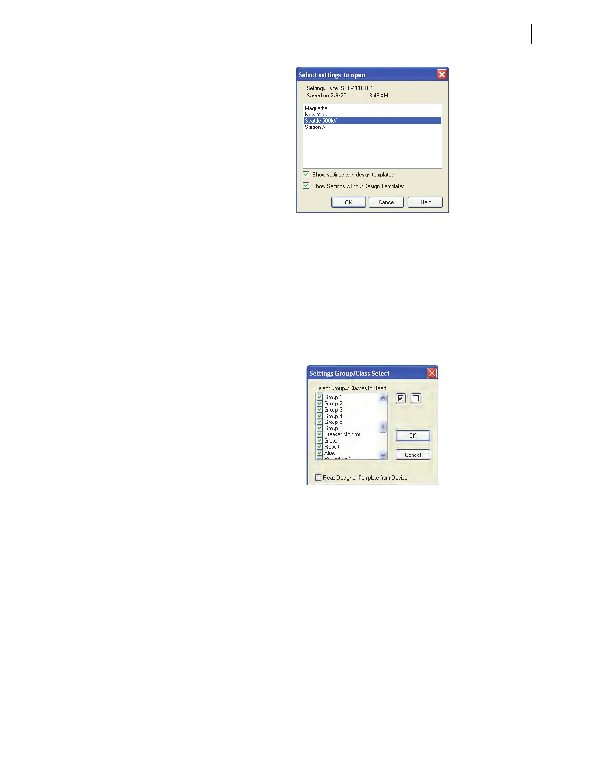 Settings Group/Class Select window (see Figure 6.9 for an example). Select