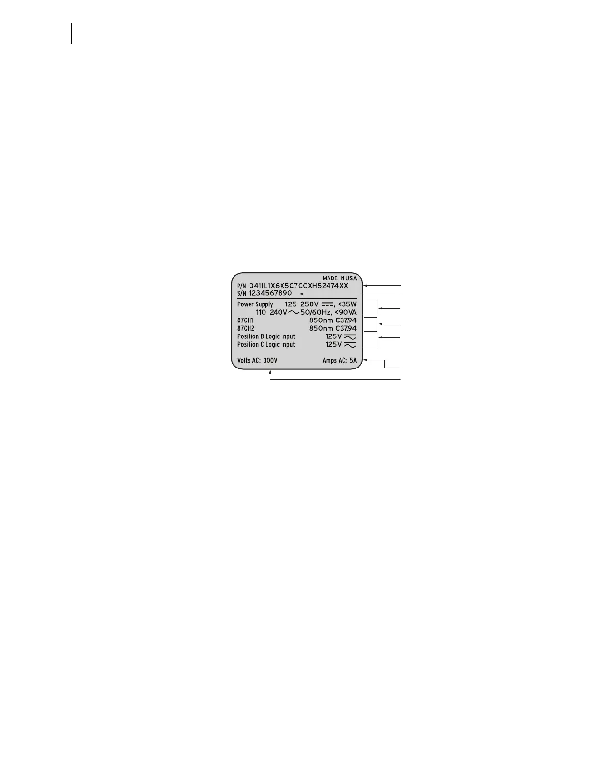 The serial number label in Figure 10.1 only lists control input voltages for I/O